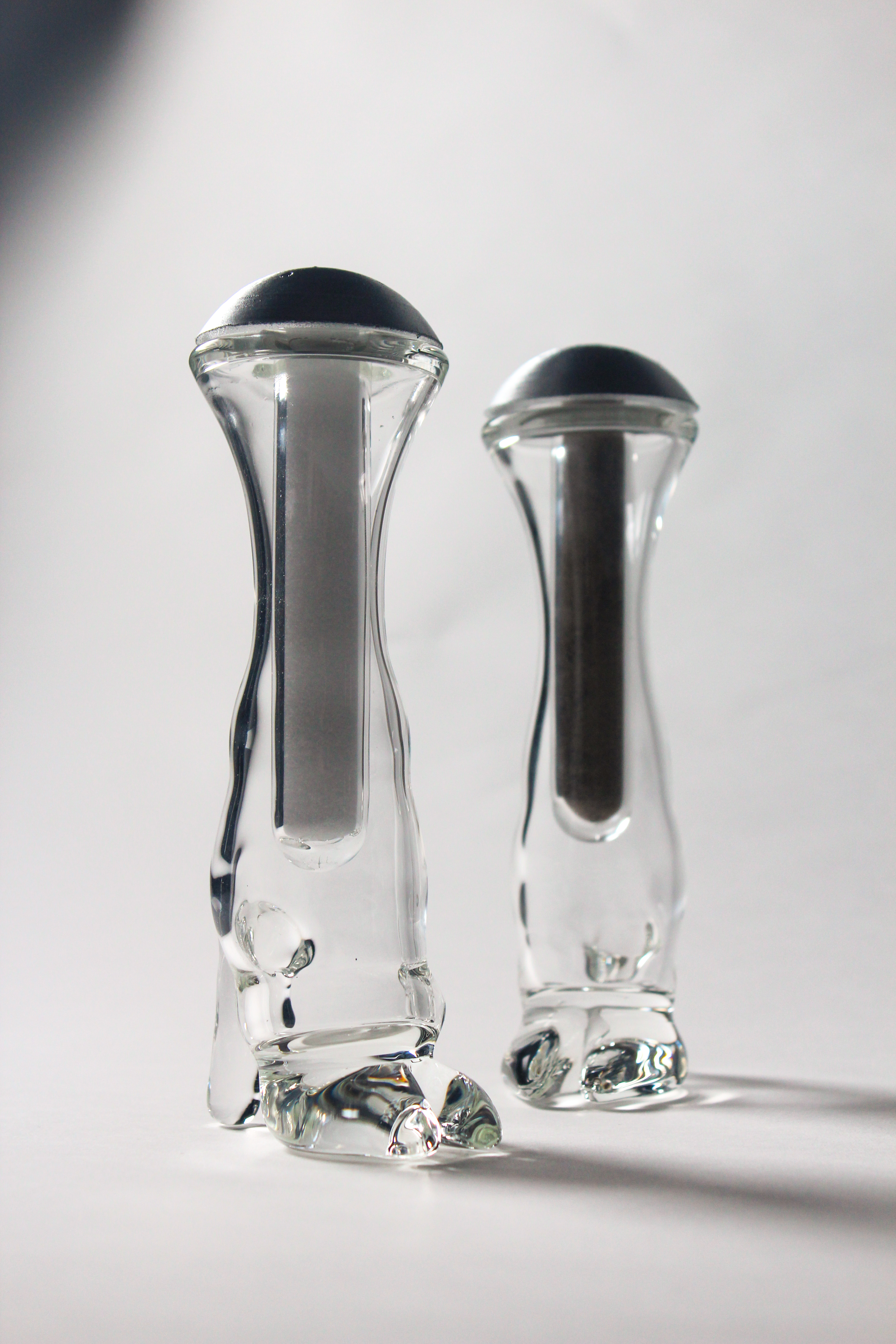 The Mara Salt & Pepper Shaker reimagines a household staple with a design inspired by the cultural symbolism of the classic steak dinner. This handsculpted design, crafted from flameworked borosilicate glass with a cast aluminum lid, celebrates the journey of food from farm to table by honoring the cow — a figure central to this process. The shaker's form playfully nods to the cow’s hoof, connecting the meal’s origins to the act of seasoning. The design draws on the heart (kitchen) and soul (dining room) of the home, grounding a timeless culinary practice in contemporary form.