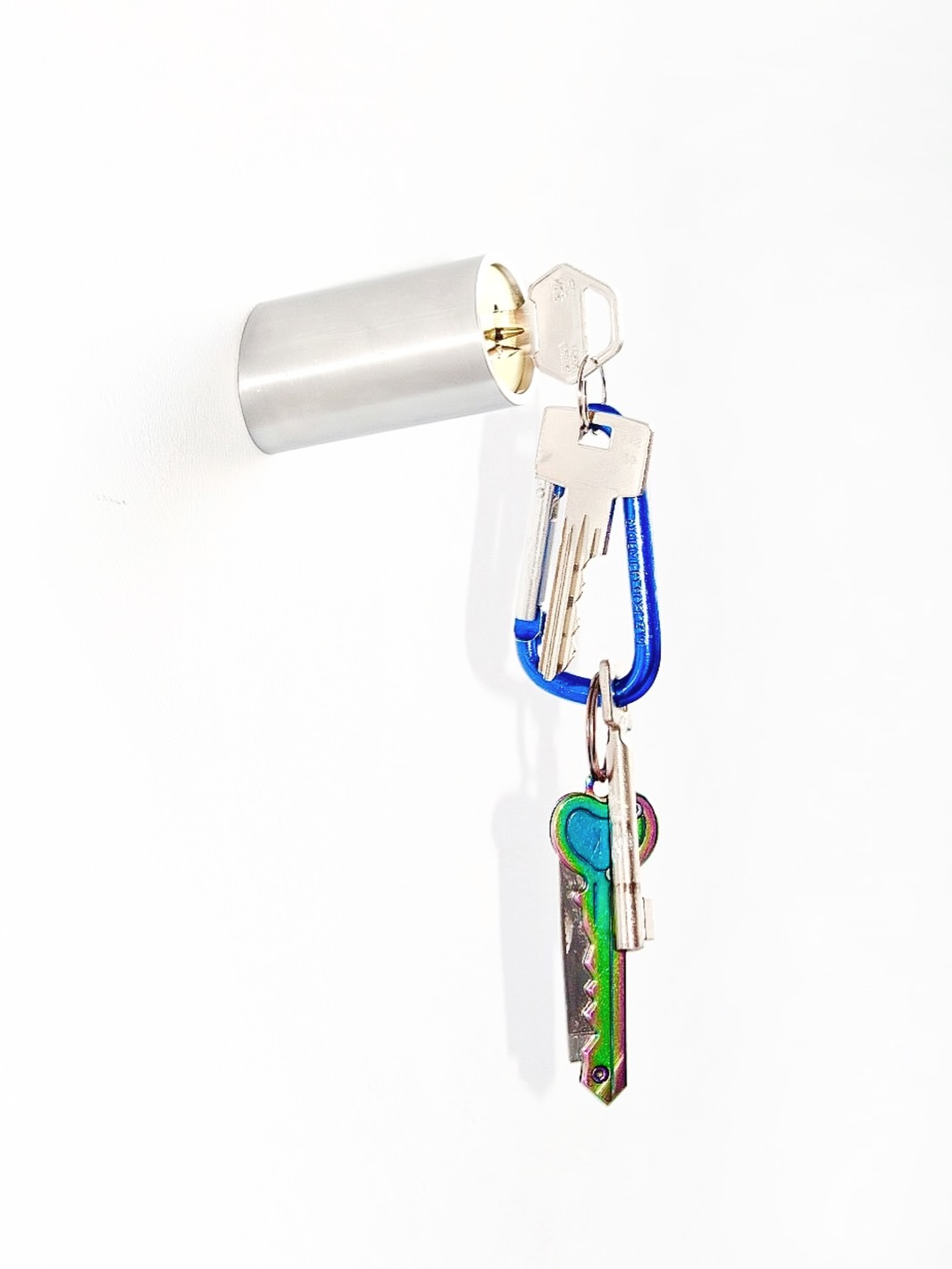 Shift hook is an aluminum/brass/pla wall-mounted hook for keys and small accessories.